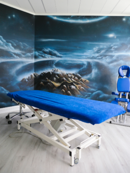 Das Konzept der Gestaltung lag hierbei darin, jedem Anwendungsgebiet der Physiotherapie eine eigene Welt zuzuordnen. Gemeinsam mit unserem Kunden entwickelten wir für die einzelnen Räume individuelle Farbkonzepte und Entwürfe.